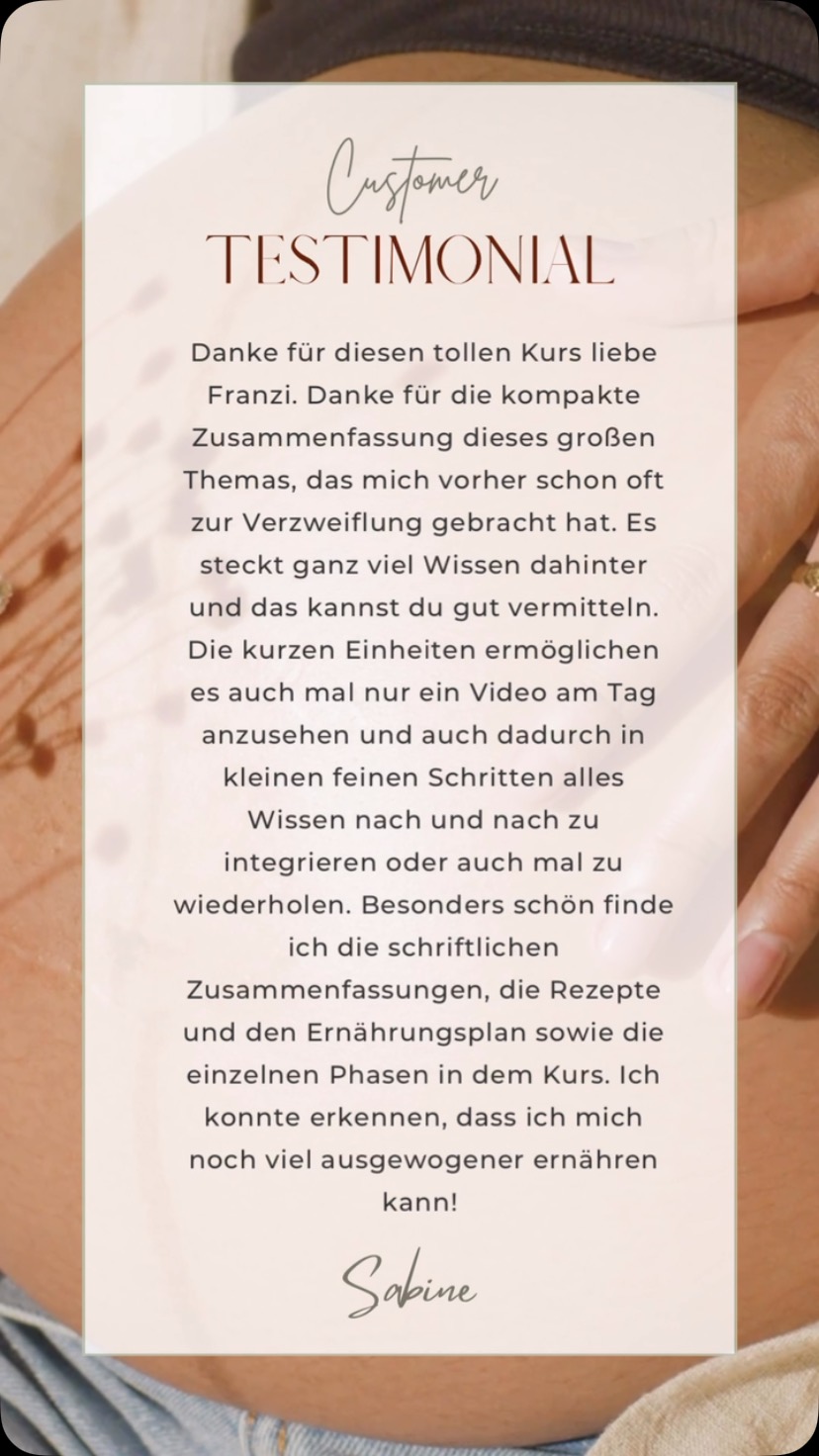 Ich helfe Frauen mit einem Kinderwunsch sowie Schwangeren und Stillenden eine nährende Ernährungsweise zu erlernen, die ihren Körper und ihr Baby optimal versorgt.
